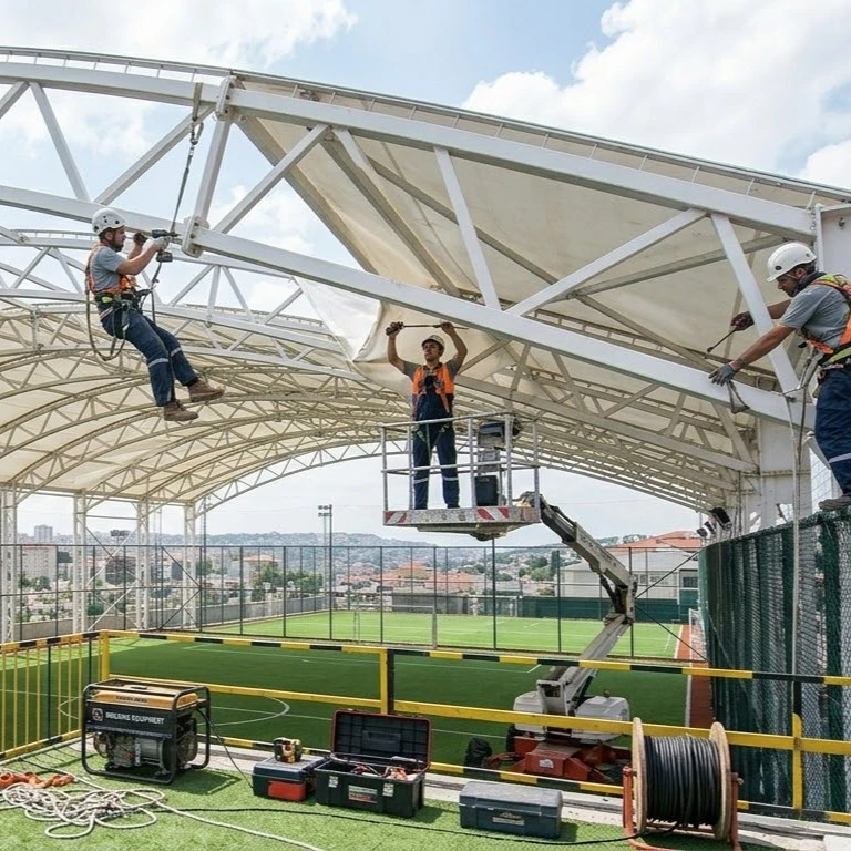 Montaj aşamasında filenin gerginliği çok kritik bir konudur. Çok gevşek bırakılan bir ağ, zamanla sarkma yaparak aydınlatma armatürlerinin önüne geçebilir ve sahanın ışık kalitesini bozabilir. Öte yandan, gereğinden fazla gergin olan ağlar ise darbe anında kopma riski taşır. Uzman ekipler tarafından monte edilen bir halı saha tavan filesi her zaman ideal gerginlikte olmalı ve kullanılan çelik halatlarla yapıya güvenli bir şekilde sabitlenmelidir. UV katkılı iplerden üretilen bu ağlar, güneşin yakıcı etkisinden etkilenmeyerek uzun yıllar boyunca çürümeden kalabilmektedir.